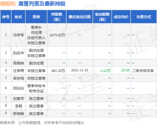 倍轻松的高管列表及最新持股情况如下:
