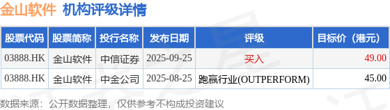 截至2025年11月21日收盘,金山软件(03888.HK)报收于28.64港元,上涨0.28%,成交量1560.29万股,成交额4.45亿港元。投行对该股的评级以跑赢行业(OUTPERFORM)为主,近90天内共有1家投行给出跑赢行业(OUTPERFORM)评级,近90天的目标均价为47港元。中信证券最新一份研报给予金山软件买入评级,目标价49港元。