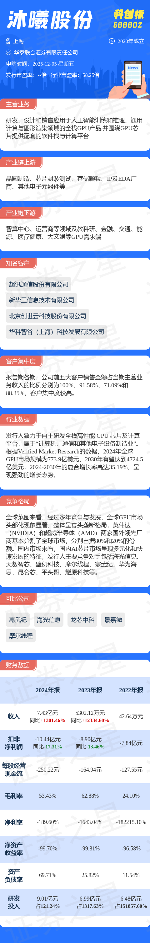 证券之星消息,沐曦股份12月5日网上申购,申购代码为787802,中签号公布日期为12月9日。该股概况请见下图: