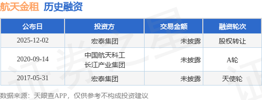 证券之星消息,根据天眼查APP于12月2日公布的信息整理,航天科工金融租赁有限公司股权转让融资,交易额未披露。