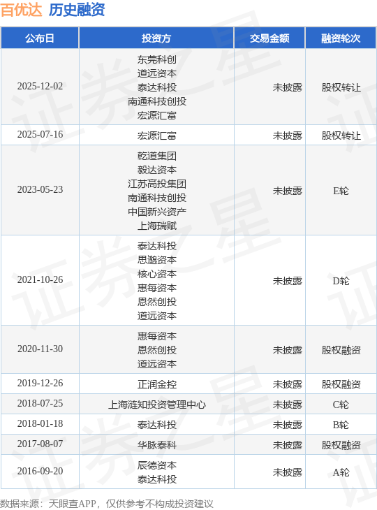 证券之星消息,根据天眼查APP于12月2日公布的信息整理,江苏百优达生命科技有限公司股权转让融资,交易额未披露。