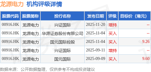 截至2025年12月8日收盘,龙源电力(00916.HK)报收于6.88港元,下跌0.15%,成交量1125.84万股,成交额7740.11万港元。投行对该股的评级以买入为主,近90天内共有3家投行给出买入评级,近90天的目标均价为9.43港元。兴证国际最新一份研报给予龙源电力增持评级。