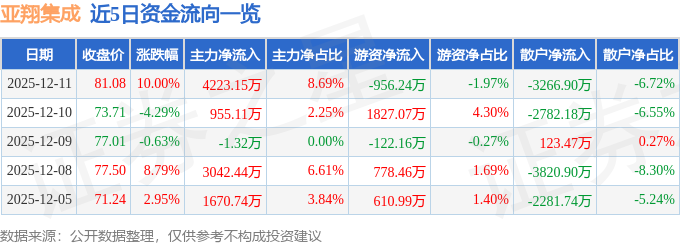 12月11日的资金流向数据方面,主力资金净流入4223.15万元,占总成交额8.69%,游资资金净流出956.24万元,占总成交额1.97%,散户资金净流出3266.9万元,占总成交额6.72%。