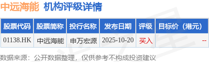截至2025年12月12日收盘,中远海能(01138.HK)报收于9.49港元,上涨3.15%,成交量2868.35万股,成交额2.71亿港元。投行对该股的评级以买入为主,近90天内共有1家投行给出买入评级。申万宏源最新一份研报给予中远海能买入评级。