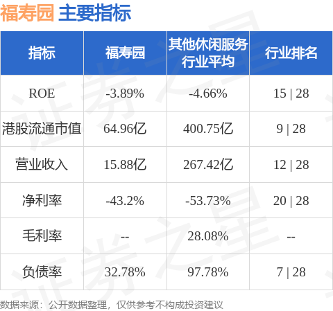 福寿园港股市值64.96亿港元,在其他休闲服务行业中排名第9。主要指标见下表: