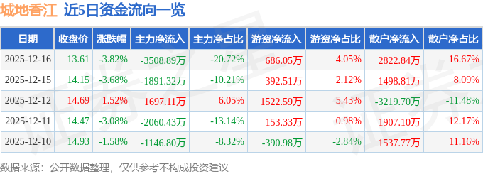 证券之星消息,截至2025年12月16日收盘,城地香江(603887)报收于13.61元,下跌3.82%,换手率2.06%,成交量12.28万手,成交额1.69亿元。