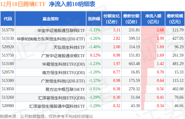 【ETF观察】12月18日跨境ETF净流入13.4亿元