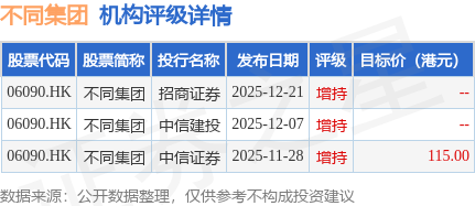 投行对该股的评级以增持为主,近90天内共有3家投行给出增持评级,近90天的目标均价为115港元。招商证券最新一份研报给予不同集团增持评级。