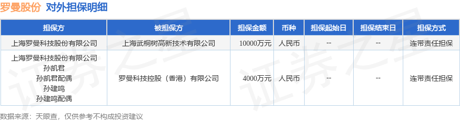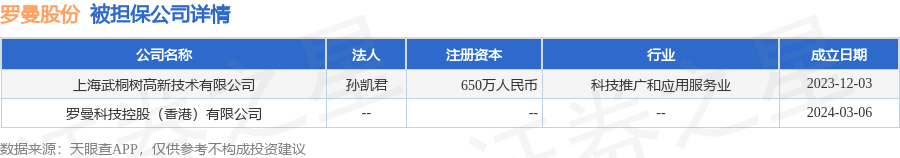 罗曼股份12月19日披露2笔对外担保,被担保公司2家。对外担保明细如下表: