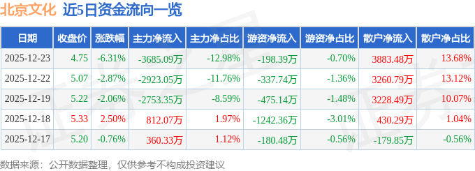 12月23日的资金流向数据方面,主力资金净流出3685.09万元,占总成交额12.98%,游资资金净流出198.39万元,占总成交额0.7%,散户资金净流入3883.48万元,占总成交额13.68%。