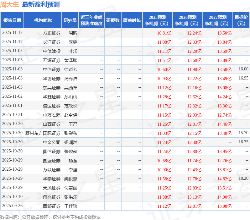 以下是详细的盈利预测信息: