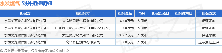 水发燃气12月23日披露4笔对外担保,被担保公司3家。对外担保明细如下表: