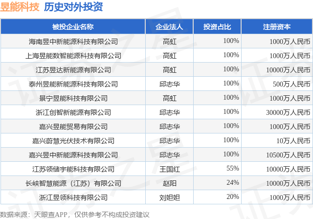昱能科技(688348.SH)新增一起对外投资,被投资公司为海南昱中新能源科技有限公司
