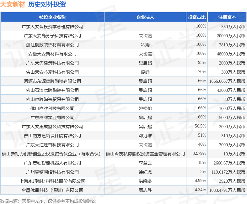 天安新材(603725.SH)新增一起对外投资,被投资公司为广东天安智投资本管理有限公司