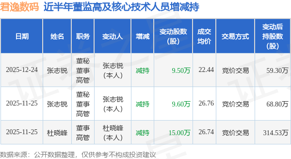 君逸数码近半年内的董监高及核心技术人员增减持详情如下: