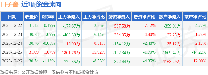 资金流向数据方面,本周口子窖主力资金合计净流入405.64万元,游资资金合计净流入133.02万元,散户资金合计净流出538.66万元。本周资金流向一览见下表: