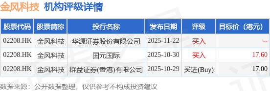 截至2025年12月29日收盘,金风科技(02208.HK)报收于15.19港元,上涨13.7%,成交量7775.86万股,成交额11.65亿港元。投行对该股的评级以买入为主,近90天内共有2家投行给出买入评级,近90天的目标均价为17.3港元。华源证券股份有限公司最新一份研报给予金风科技买入评级。