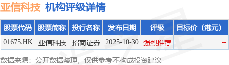 截至2025年12月31日收盘,亚信科技(01675.HK)报收于7.56港元,上涨2.44%,成交量110.92万股,成交额834.15万港元。投行对该股的评级以强烈推荐为主,近90天内共有1家投行给出强烈推荐评级。招商证券最新一份研报给予亚信科技强烈推荐评级。