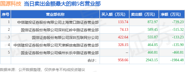 证券之星消息,沪深交易所2026年1月6日公布的交易公开信息显示,国源科技(920184)因当日价格振幅达到30%的前5只股票,当日收盘价涨幅达到20%的前5只股票登上龙虎榜。此次是近5个交易日内第1次上榜。