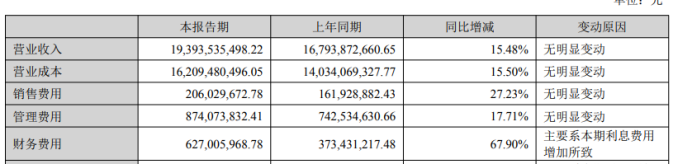 值得一提的是,高企的利息也推高了财务费用,上半年财务费用同比增长67.9%,达到同期史上最高,其中利息费用高达8亿元。