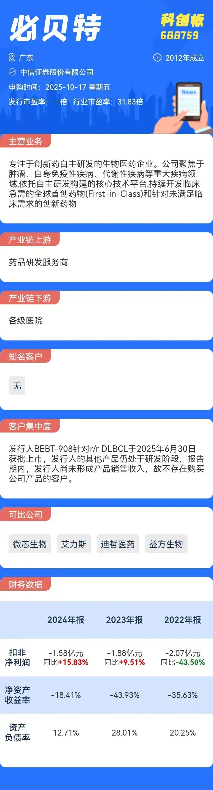 从估值看,公司目前尚未实现盈利,在近期新股中较为罕见,但考虑到公司的科技属性,及近一年多新股首日赚钱效应明显,综合判断必贝特首日破发概率较小。