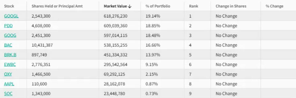 与一众投资大佬们不同的是,李录的喜马拉雅资本13F报告向来简短,甚至连“前十大重仓”都凑不够。第三季度,李录持仓继续“按兵不动”,定力十足。