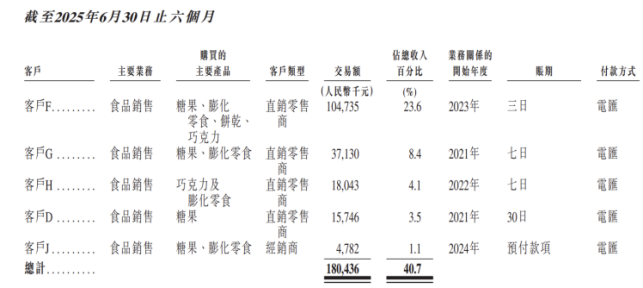据了解,公司的直销零售商客户包括鸣鸣很忙、万辰等量贩零食店,以及名创优品、美宜佳、永辉超市等。随着渠道结构的变化,公司客户集中度明显提升。公司来自前五大客户的销售占比由2022年的4.1%增至2024年的30.3%。2025年上半年,该比例进一步增长至40.7%。