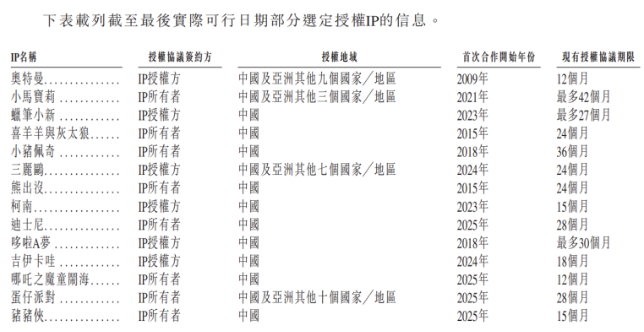 招股书披露,金添动漫现有核心IP授权协议期间在12至42个月之间。其中,奥特曼IP的首次合作年份为2009年,现有授权期限为12个月。这意味着,若公司无法与奥特曼签订新授权协议,恐将对其业绩造成冲击。