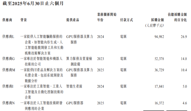 证券之星注意到,供应商结构的变化更放大了潜在风险。2022年前五大供应商主要为微亿智造提供算力服务、质量检测设备及工业机械臂等产品。今年上半年,前五大供应商格局已完全偏向算力硬件,其中三家企业供应GPU服务器,另外两家则分别供应算力服务及质量检测设备、智能生产线。