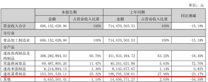 然而水产品项目的实际推进节奏一再迟于预期。项目原定于2024年12月达到可使用状态,后因工艺技术优化等原因,首次延期至2025年12月。今年10月,公司又通过优化设备采购方案、调用现有设备等方式,将项目总投资额由6.76亿元调减至5.91亿元。