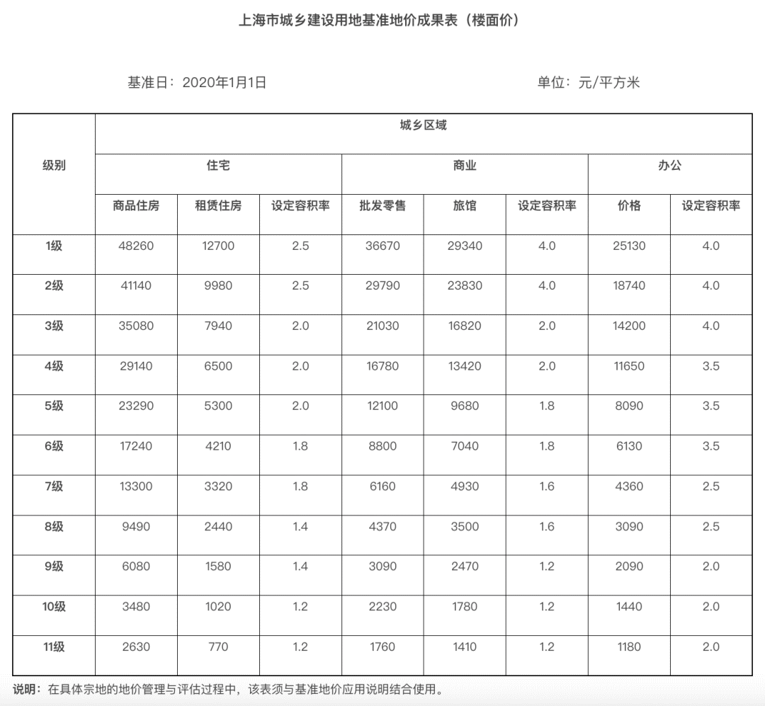 时隔六年,上海土地价格体系迎来全面调整。