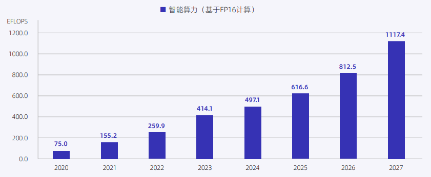 图片说明:2020年-2027年中国智能算力规模及预测; 资料来源:IDC