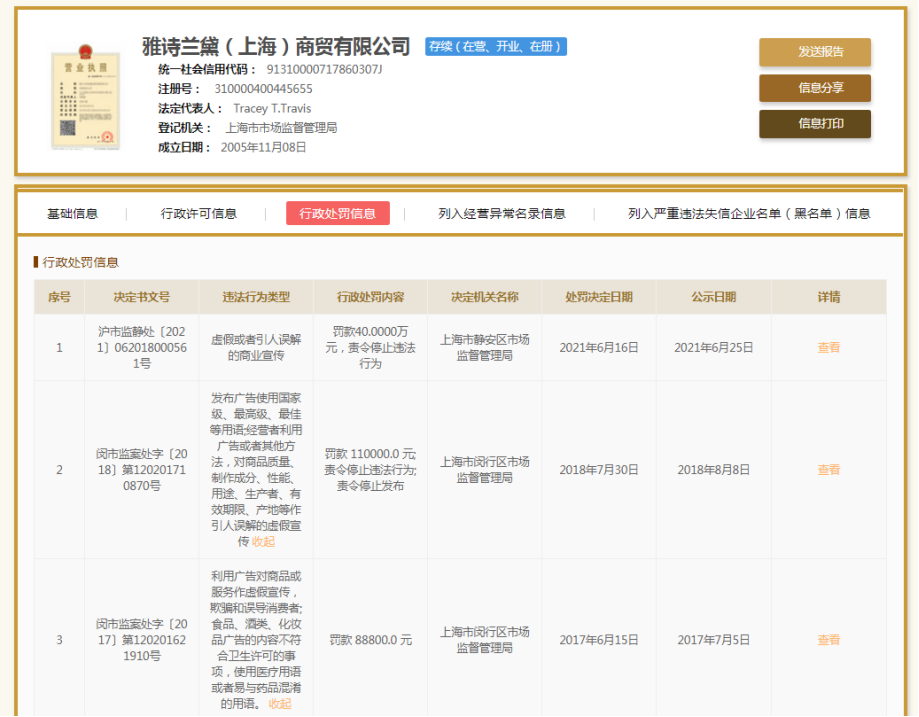 将时间线再往前推,在2017年-2020年间,欧莱雅(中国)、雅诗兰黛等国际大牌也曾因虚假宣传被相关部门处罚,雅诗兰黛甚至因屡错屡犯而被媒体称为“惯犯”。而近年来,国货品牌也频频被曝光虚假宣传问题。