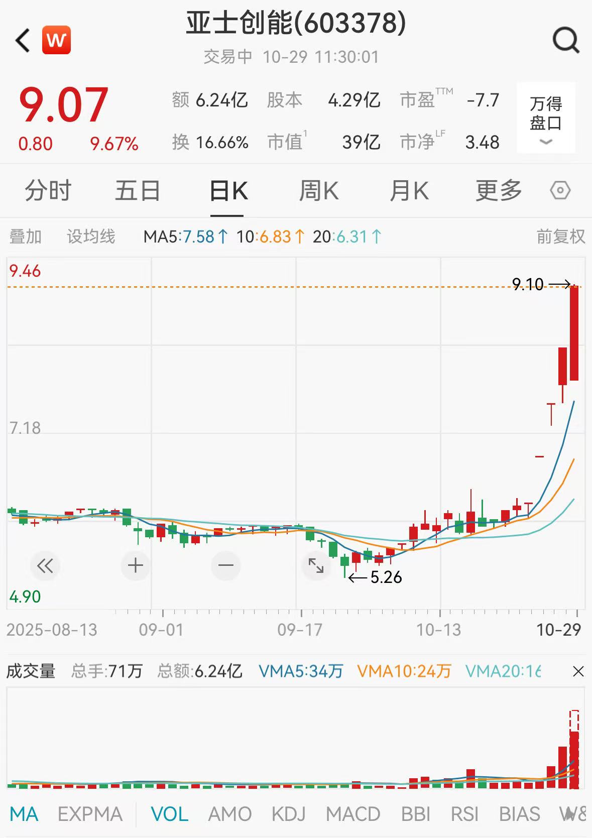 10月29日,亚士创能(603378.SH)股价开盘跳水,随后再度触及涨停,此前已斩获“三连板”。