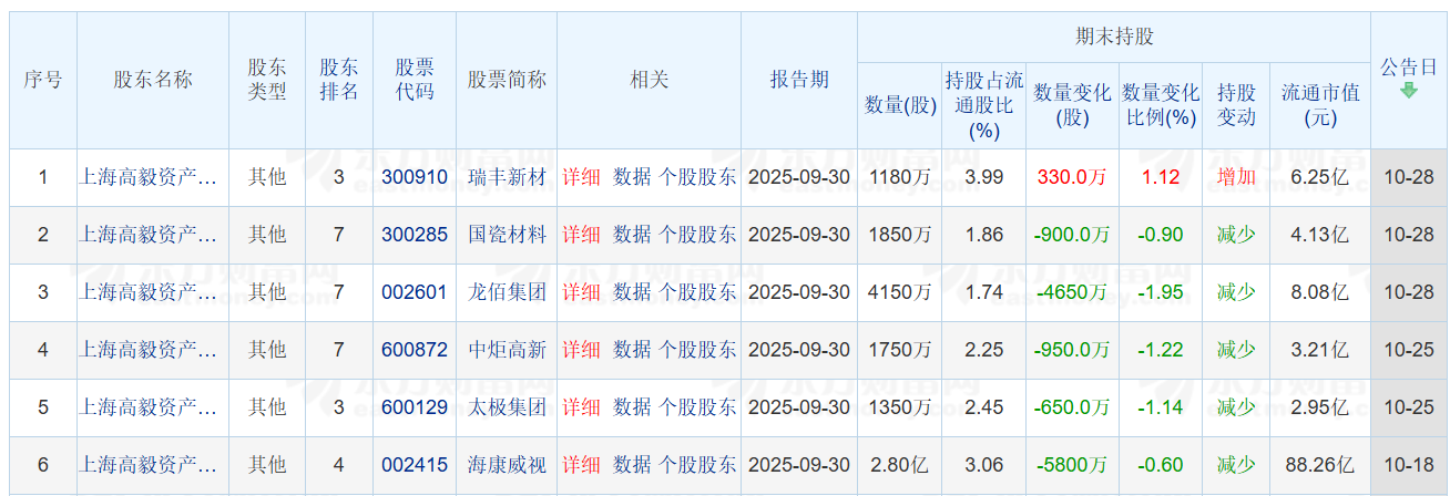 图片说明:高毅邻山1号远望基金三季度持股变动,数据来源于东方财富网