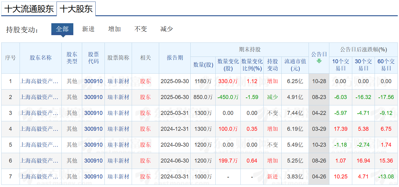 图片说明:瑞丰新材2025三季报前十大股东持股变动,数据来源于同花顺