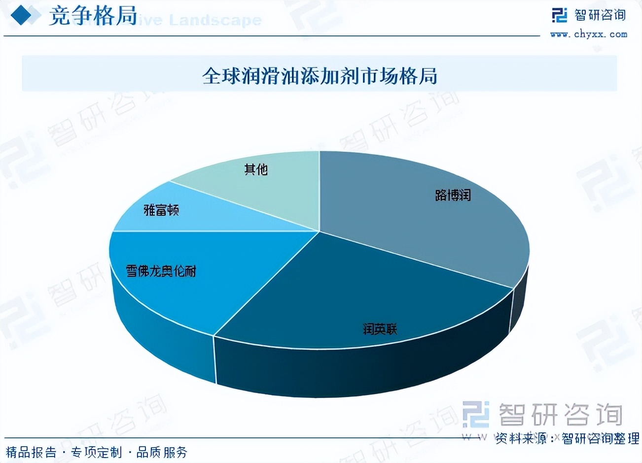 图片说明:全球润滑油添加剂市场格局,数据来源于智研咨询