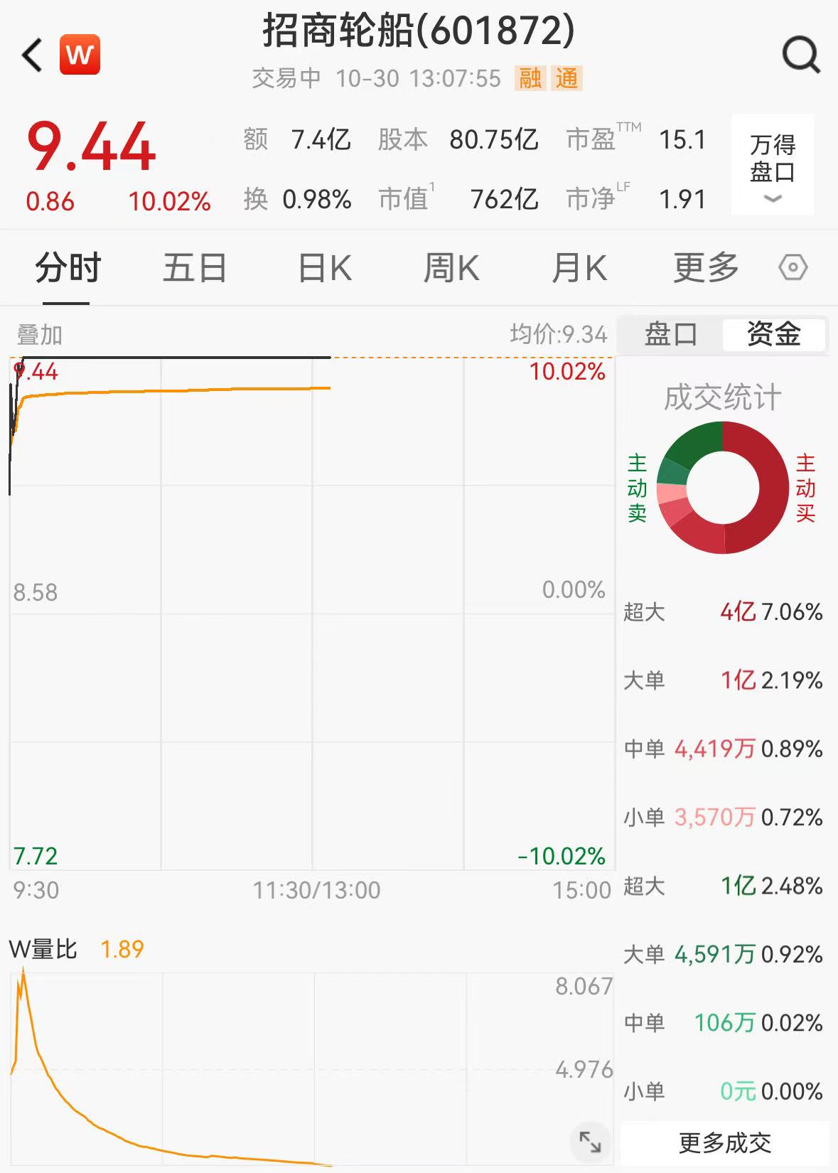 10月30日,招商轮船(601872.SH)涨停,报9.44元/股,创下自2015年10月以来的新高,引发市场广泛关注。