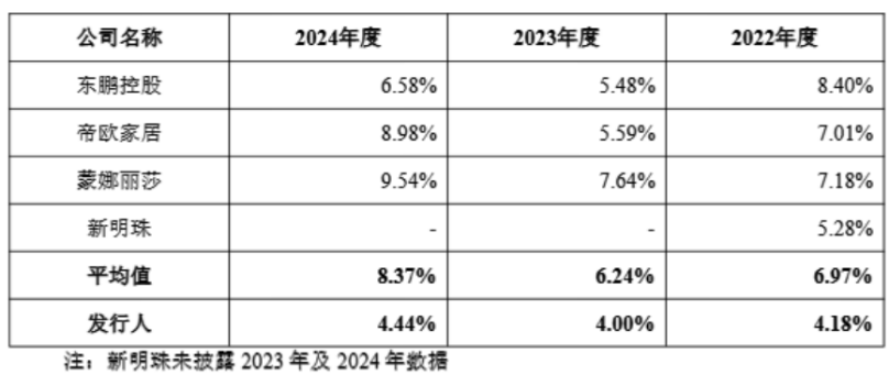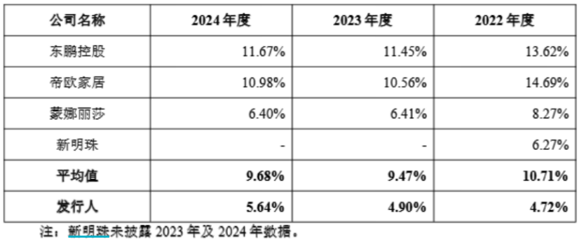 作为面向C端与B端(工程、经销商)的建材企业,销售费用是马可波罗三费中的重要组成部分。2022-2024年,公司销售费用率分别为4.72%、4.90%、5.64%,显著低于同行业可比上市公司的平均值。