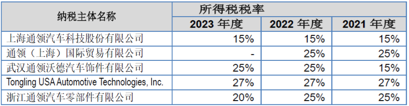 从上表可见,发行人自身主体一直保持15%的企业所得税率,而上表中显示武汉通领沃德汽车饰件有限公司从2021年度15%的所得税率,上升为2022年度-2023年度的25%的企业所得税率。从某种程度上说,武汉通领沃德也放弃高企资格已不下两年,发行人此番重拾武汉通领沃德的计划时间可能也并不长。