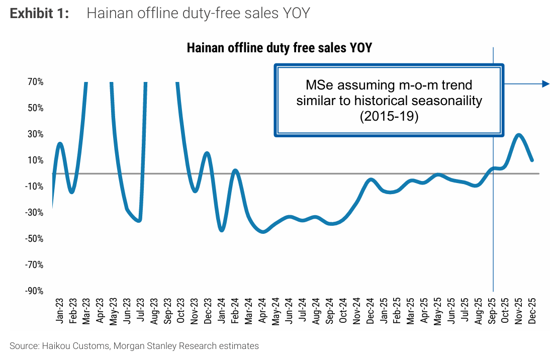 图片说明:海南离岛免税销售额2024Q2来首次转正,数据来源于摩根士丹利