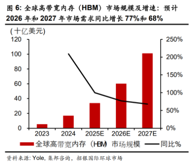 据集邦咨询预测,2027年HBM4E将占据整体高带宽内存需求的40%;当前高带宽内存市场供应缺口显著,供需紧张的局面预计持续,或将支撑2026年和2027年高带宽内存需求同比分别增长77%和68%。