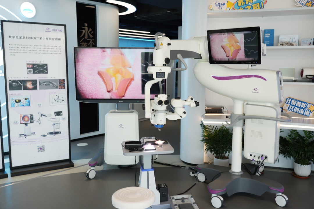 峰会现场,图湃医疗全新眼科高端技术——“数字孪生眼”眼科多模态术中扫频OCT导航显微镜进行了国际首发仪式。据介绍,该款产品具备全球首创的、基于术中扫频OCT技术的4D-4K全息全眼数字重建功能,是眼科手术治疗领域的重大突破。作为眼科领域唯一入围工信部高端医疗装备推广应用项目的高端手术显微镜产品,其搭载的“数字孪生眼”创新功能的推出,将推动眼科手术向多模态、数字化与智能化转型升级,创造更大的临床价值。