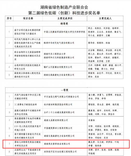 湖南省绿色制造产业联合会绿色低碳(创新)科技进步奖,作为湖南省聚焦绿色低碳产业的权威行业奖项,本届评选由知名高校专家、龙头企业技术带头人组成专业评审团,历经初评、复评等多轮严格筛选,最终选出兼具 “技术突破性、低碳效益性、产业实用性” 的标杆成果。