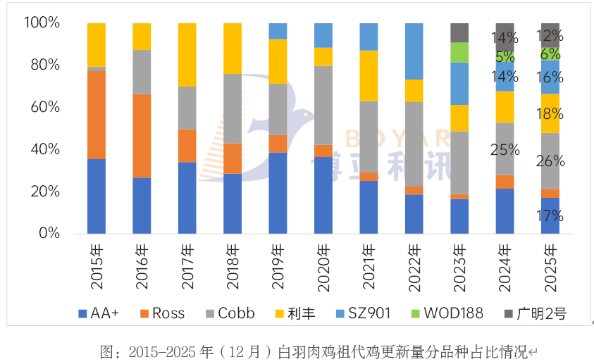 图片说明:白羽肉鸡祖代鸡更新结构变化,数据来源于博亚和讯