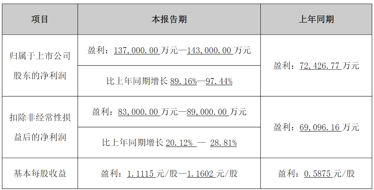公司预计2025年度实现归属于上市公司股东的净利润12.7-14.3亿元,较上年同期增长89.16%-97.44%。