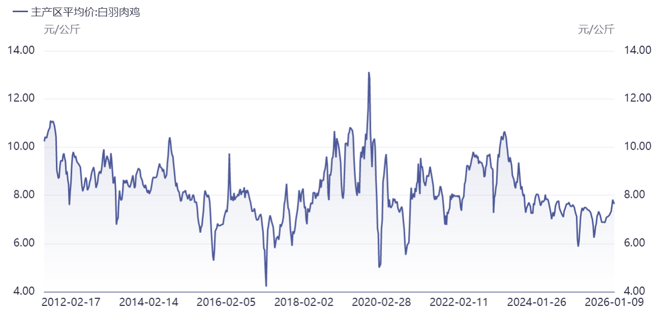 图片说明:白羽肉鸡主产区平均价,数据来源于同花顺