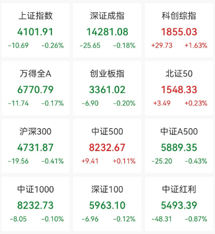 今日(1月16日),A股全天高开低走,三大指数小幅下跌。截至收盘,沪指跌0.26%,险守4100点大关,最新报4101.91点;深证成指跌0.18%,创业板指跌0.2%。市场全天成交30565.24亿元,较昨日放量1180.3亿元。