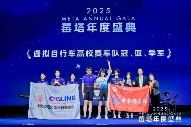 虚拟自行车领域,MetaSVS连续第二年与环上海新城自行车赛联合举办线上外卡赛。今年通过选拔组建了“上海农商银行MetaSVS联队”和“光明随心订MetaSVS联队”,且MetaSVS联队虚拟选手再度闪耀,选手许润发成功登上领奖台。这种“线上选拔+线下实战”的虚实结合模式,打破了时空限制,为青年运动员提供了更多实战机会,有效降低了参赛门槛,开辟了从虚拟赛场走向真实竞技的人才成长新路径。