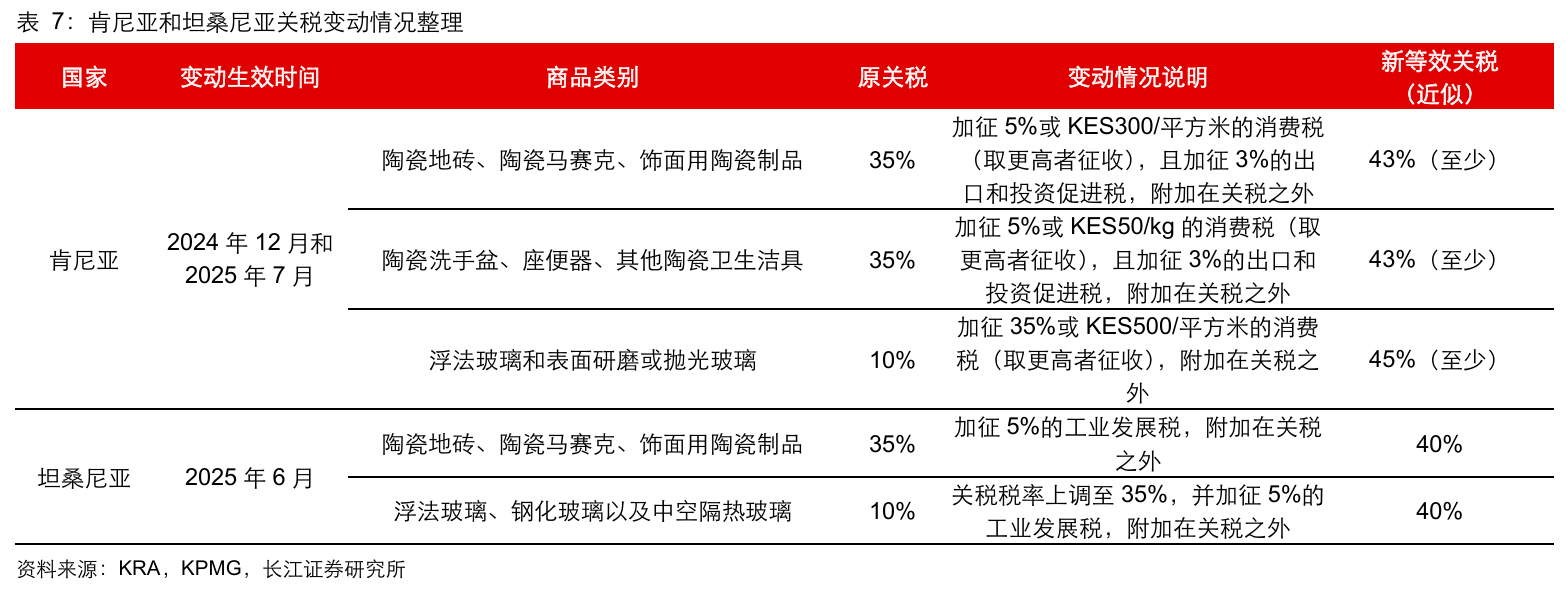 2025年中,肯尼亚继续增加关税,同时坦桑尼亚也对陶瓷和玻璃大幅增加关税。